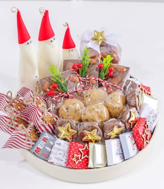 – 700 G of Belgium chocolate mix fillings (almond, hazelnut, Nutella, salted caramel, pistachio, rahash) with Christmas-themed wrapping.