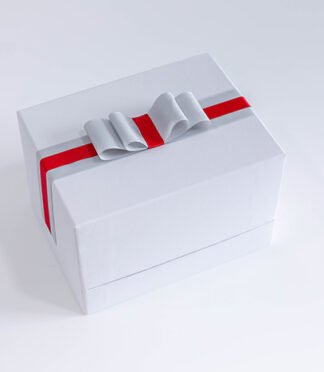 Hard white cartoon box size 20cm 15cm x 13cm.
