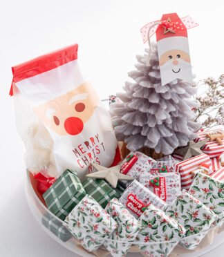 – 500G of dragees (chocolate-coated sugar) in a Santa design bag.