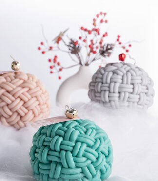 A unique and charming handcrafted decorative candle that resembles a cozy knitted ball.
