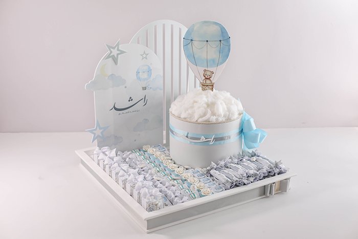 – Acrylic background size 60 cm height and acrylic air balloon decoration.