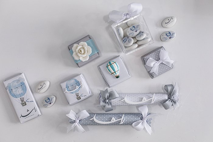 – 500 G of finger Belgian chocolates in different fillings (almond, wafer, pistachio) with customized wrapping paper and accessories.