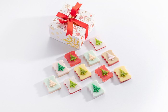 Christmas-themed box size 20cm x 20cm.