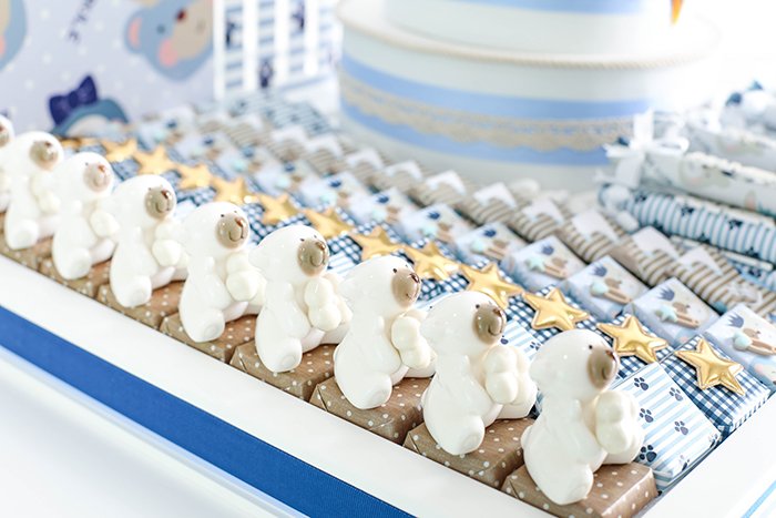 – 10 boxes on a foam decoration, inside each box 1 chocolate and 2 dragées.