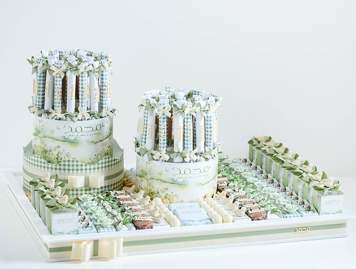 – 1 KG of Belgian chocolate fingers in different fillings (almond, wafer, pistachio) with customized wrapping paper and acrylic name.