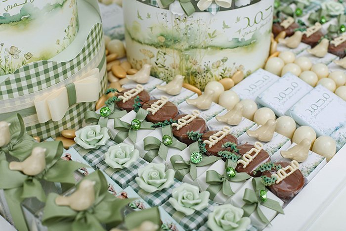 – 2.5 KG of Belgian chocolates in different fillings (almond, hazelnut, wafer, pistachio, salted caramel) with customized wrapping papers and accessories.