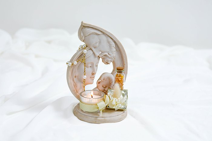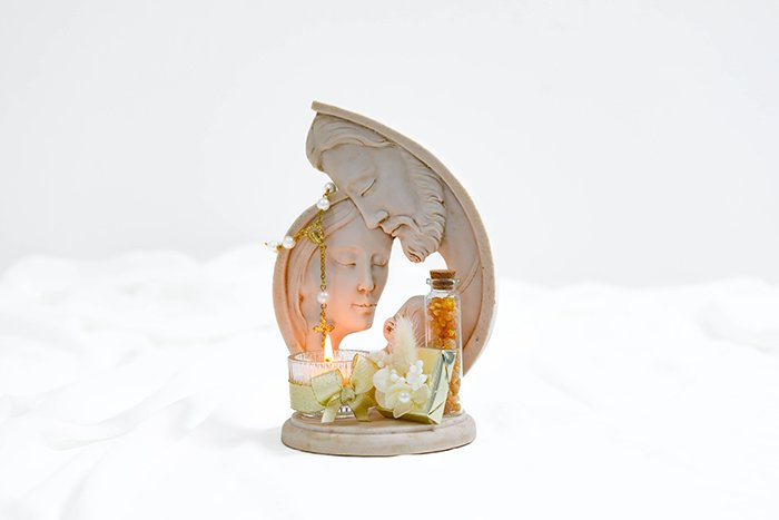 The Holly family giveaway is made of resin, size 13cm x 20cm H.
