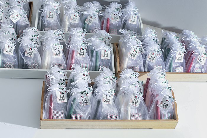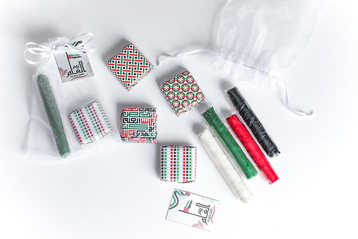 1 piece of finger chocolate with the UAE flag colors.