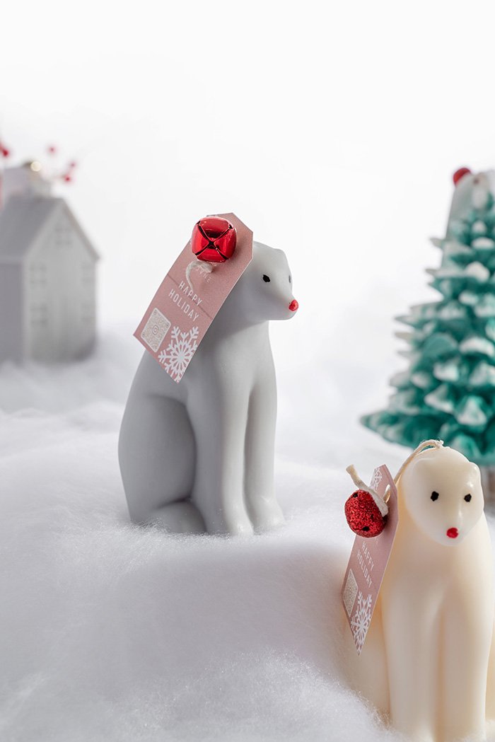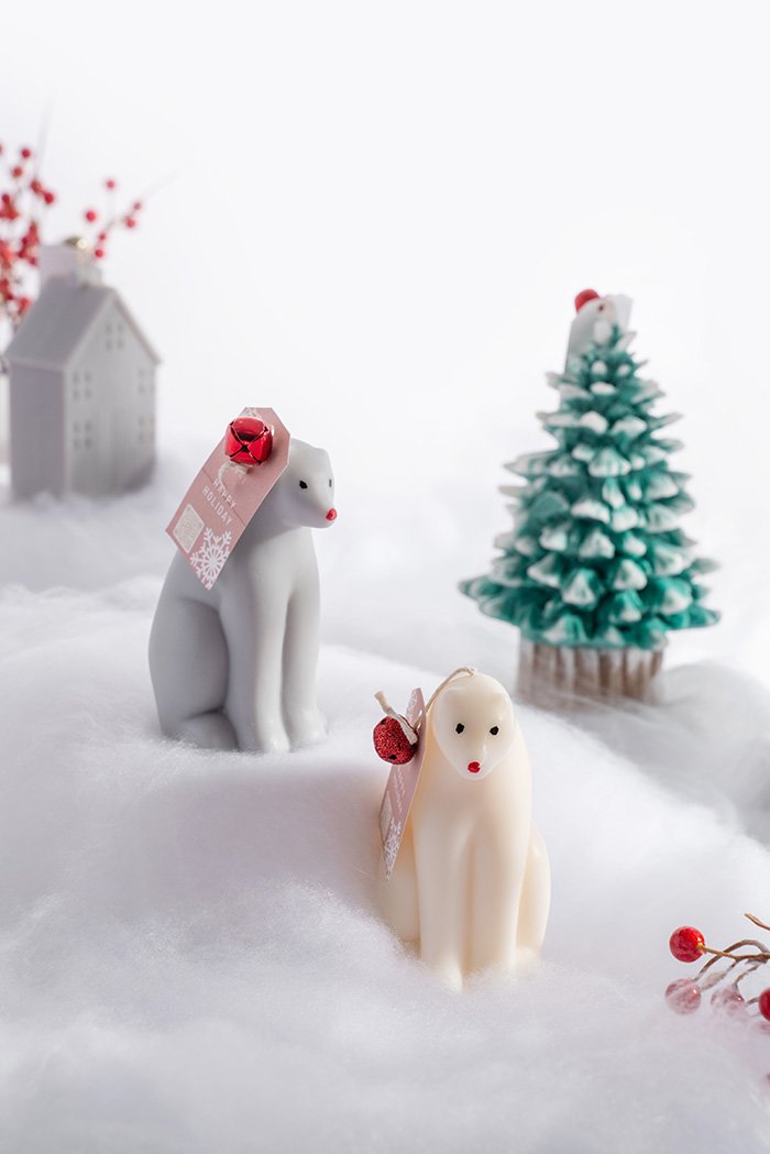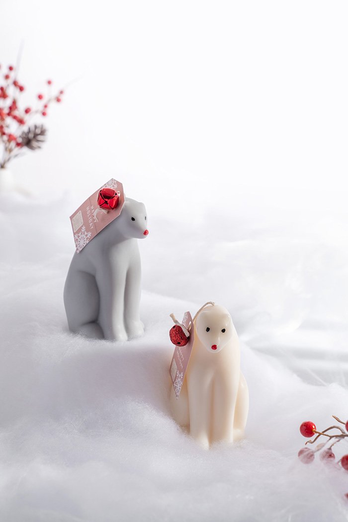 Polar bear (set of three pieces) (gray, off-white, beige) candle size 10cm H.