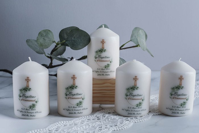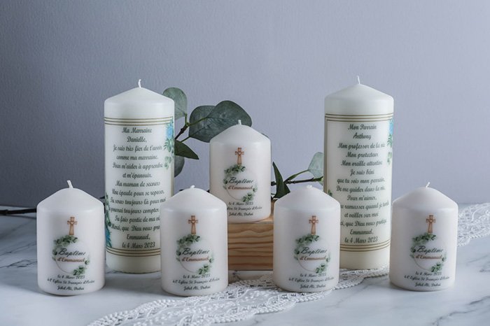 Set of 7 pieces of printed candles ( made of natural soya wax).