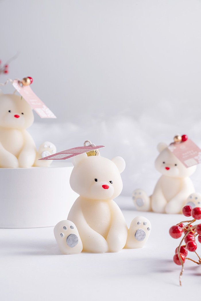 Teddy bear candle (set of three pieces) (offwhite) size 11cm H.