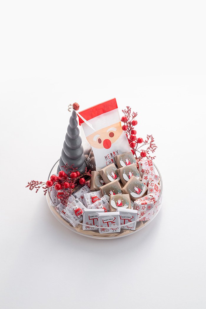 -500G of Belgium chocolate with mix fillings (almond- pistachio, caramel, wafer, hazelnut) in a special Christmas wrapping and accessories.