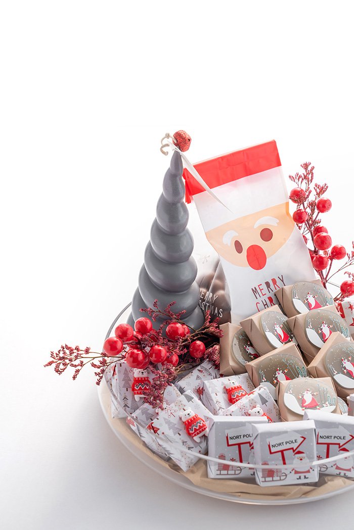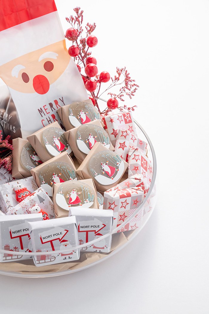 – 500G of dragees (almond-coated chocolate) in a Santa design bag.