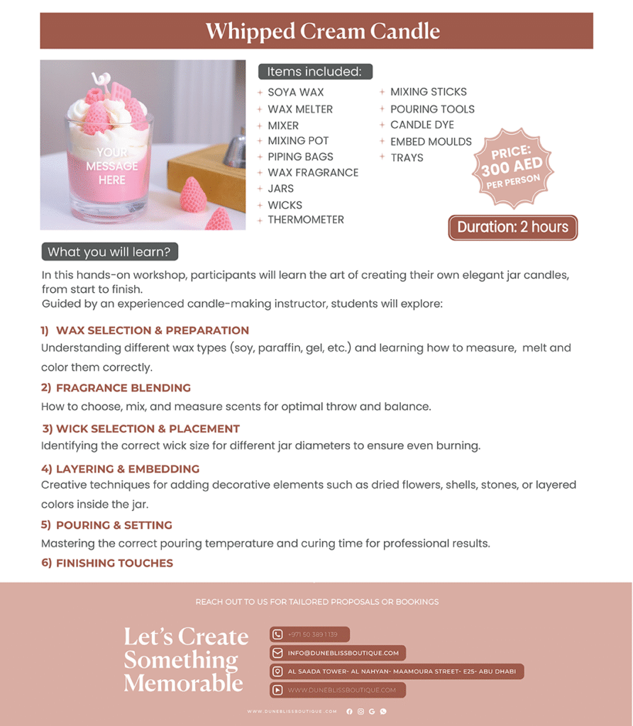 Join us for an engaging candle and soap-making experience designed to inspire creativity and team connection. Participants will pour, blend, and craft their own customized creations to take home.